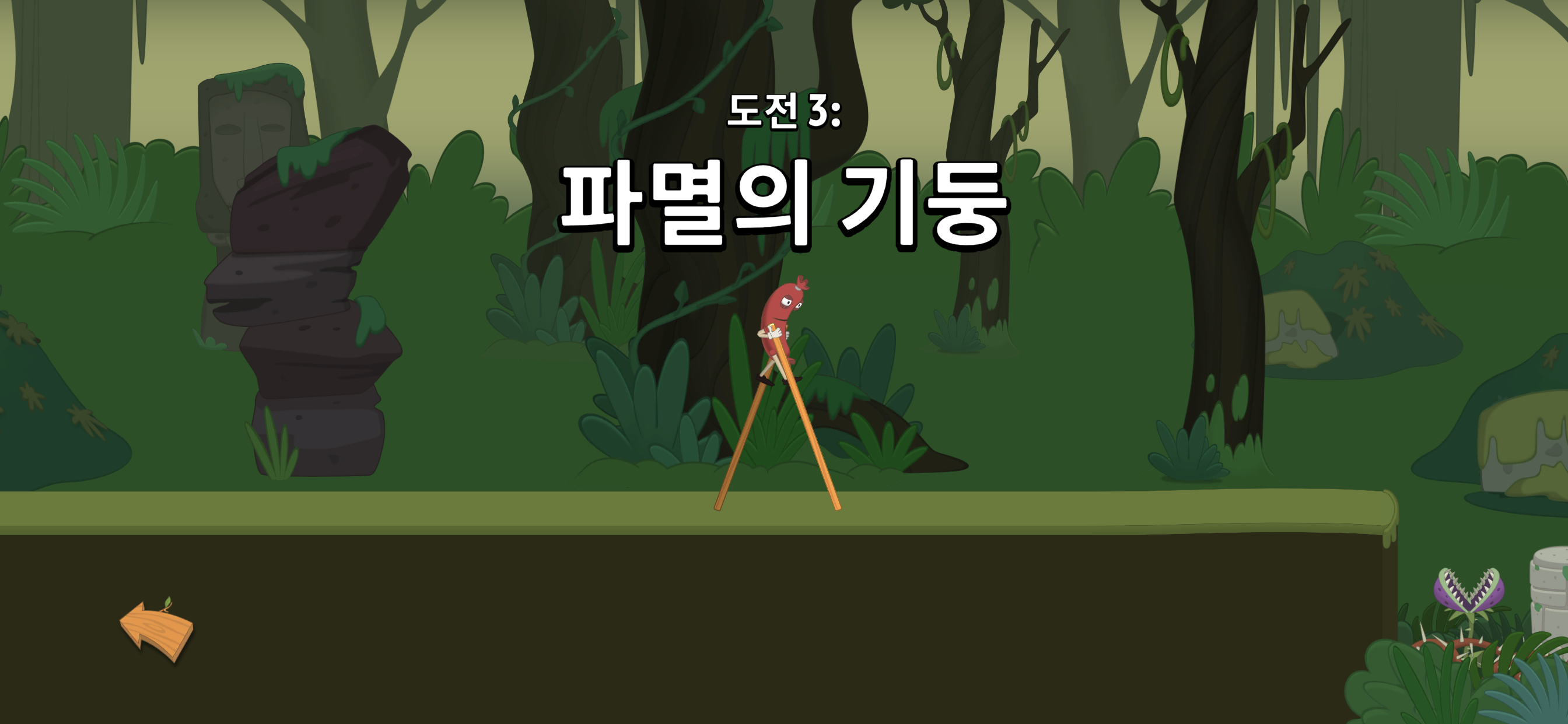 온라인게임순위 100안에 들어있는 GAME인 워크 마스터 (Walk MASTER)는 단순히 터벅터벅 걷는 게임이 아니라 캐릭터가 목발 같은 것에 올라탄 상태에서 다양한 장애물들을 아슬아슬하게 넘어서 반환점에 도착을 해야 하는 온라인 게임이라 더 재미를 느끼기에 좋은 것 같다. 넘어질 듯 말듯 한걸음 한걸음에 아찔함도 좋았고 장애물이 단순화 되어 있지 않고 독특하고 그때그때마다 새로운 것들이 돌발적으로 나오기 때문에 지루하다는 느낌을 전혀 받지 않을 수 있어서 좋았다. 위에 있는 사진에서 보다시피 물위를 점프해서 돌아다니는 이빨달린 물고기와 돌멩이 그리고 나무 판자등과 같은 장애물들도 있었을 뿐만 아니라 원숭이나 벌이나 다른 다양한 것들이 많이 준비되어 있어서 하나씩 발견하는 재미 또한 있었던 것 같다.